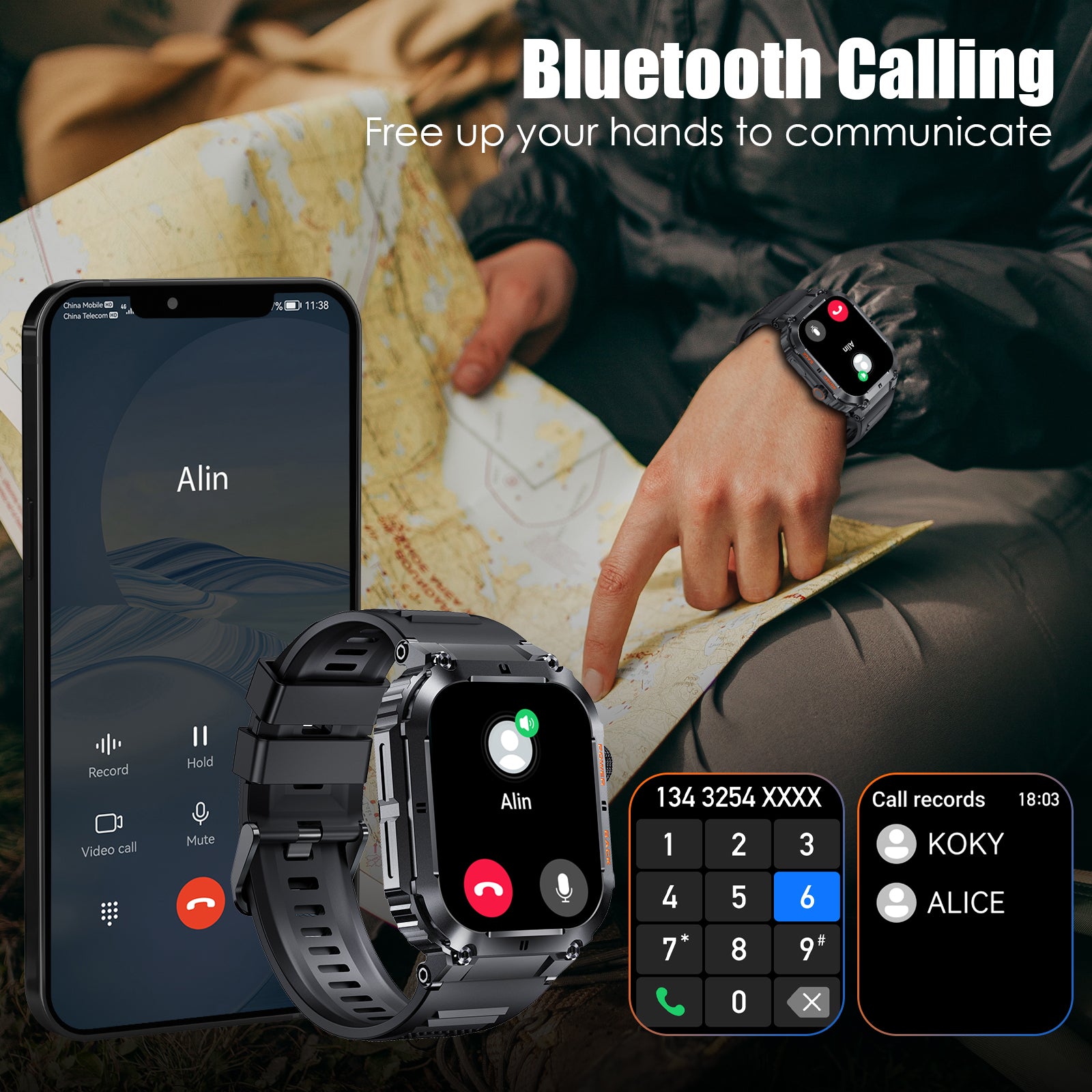 EIGIIS 1.96” HD Military Smart Watches for Men Rugged Smart Watch(Answer/Dial Calls) Outdoor Sports Tactical Fitness Tracker Watch, Smartwatch for iPhone Android Phones