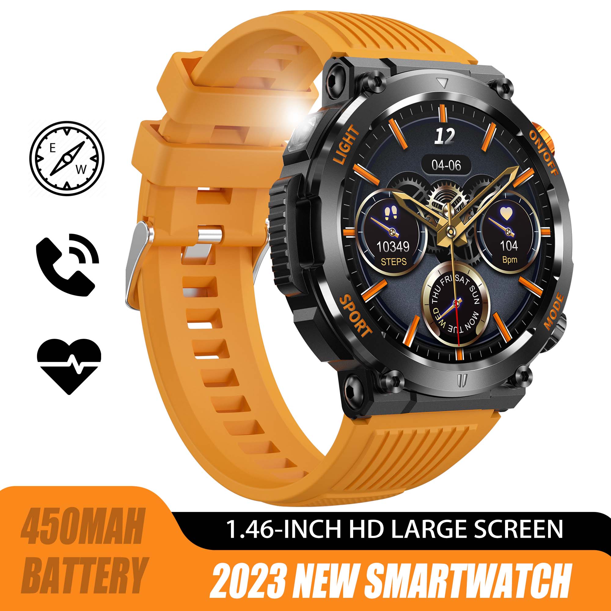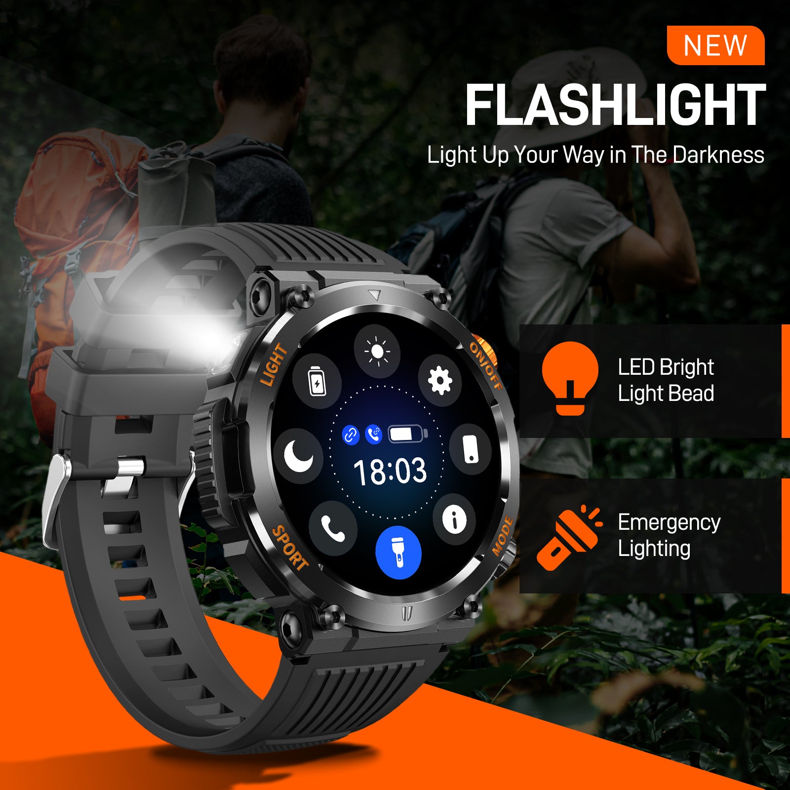 ⌚【Flashlight & Compass】- Designed with an illuminated torch on the side, EIGIIS activity tracker is perfect for outdoor sports, giving you a clear view and eliminating your fear of the dark. The advanced compass function accurately measures and calibrates the degrees of your current heading and the current time. With EIGIIS digital watches for men, no more worrying about losing your way!