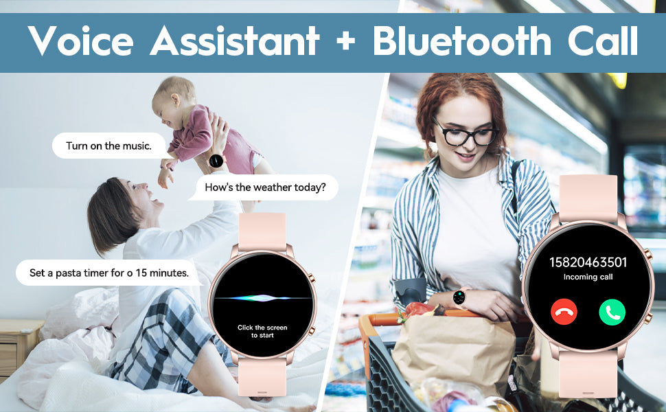 Your Personal Assistant -- EIGIIS smart watches for women and men built-in voice assistant that allows you to effortlessly manage music playback, ask questions, check the weather, set alarms, and much more. Moreover, EIGIIS smartwatch has many useful functions, such as alarm clock, stopwatch, timer, calculator, silent mode, DIY dial, control camera, brightness adjustment, etc. Experience the ultimate convenience of the G28 smart watch right on your wrist!