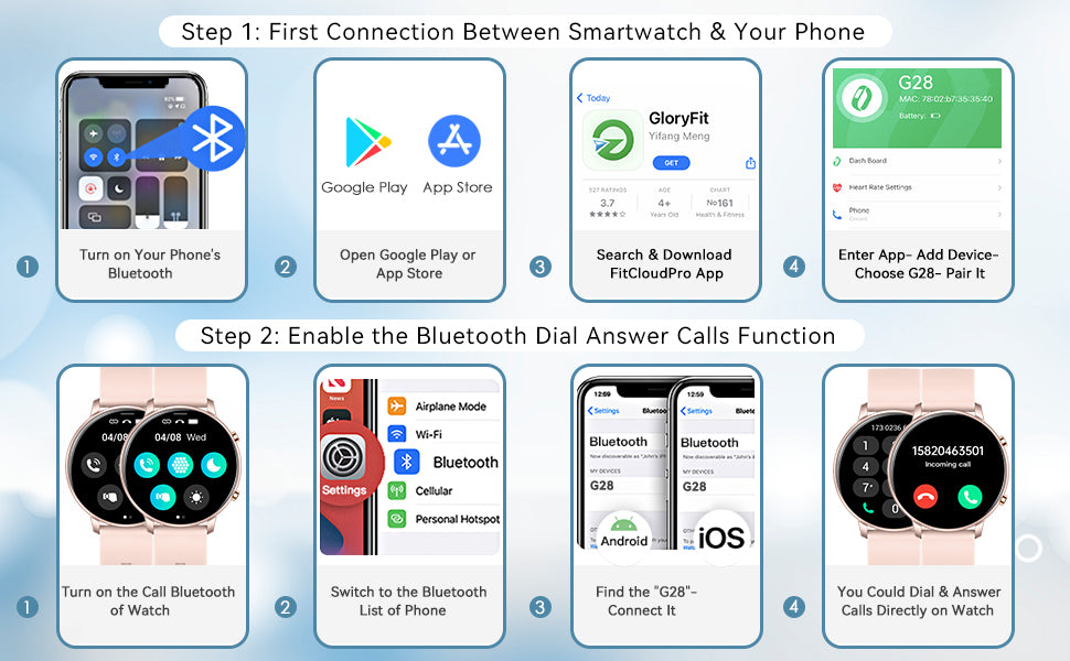 Stay Connected -- When connected to your phone, you can make and receive calls directly from your EIGIIS smart watch. All messages and notifications will be displayed on your smartwatch on your wrist and alert you via vibration. EIGIIS men's and women's smartwatch allows you to stay in touch with your loved ones even when you are traveling or at work. Are you worried about missing important messages from your loved ones? Pick up the G28 smart watch and let them know you miss them!