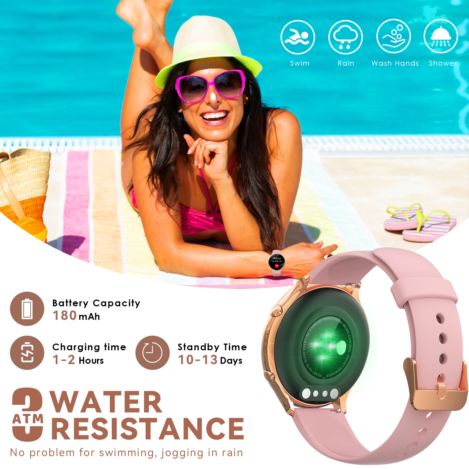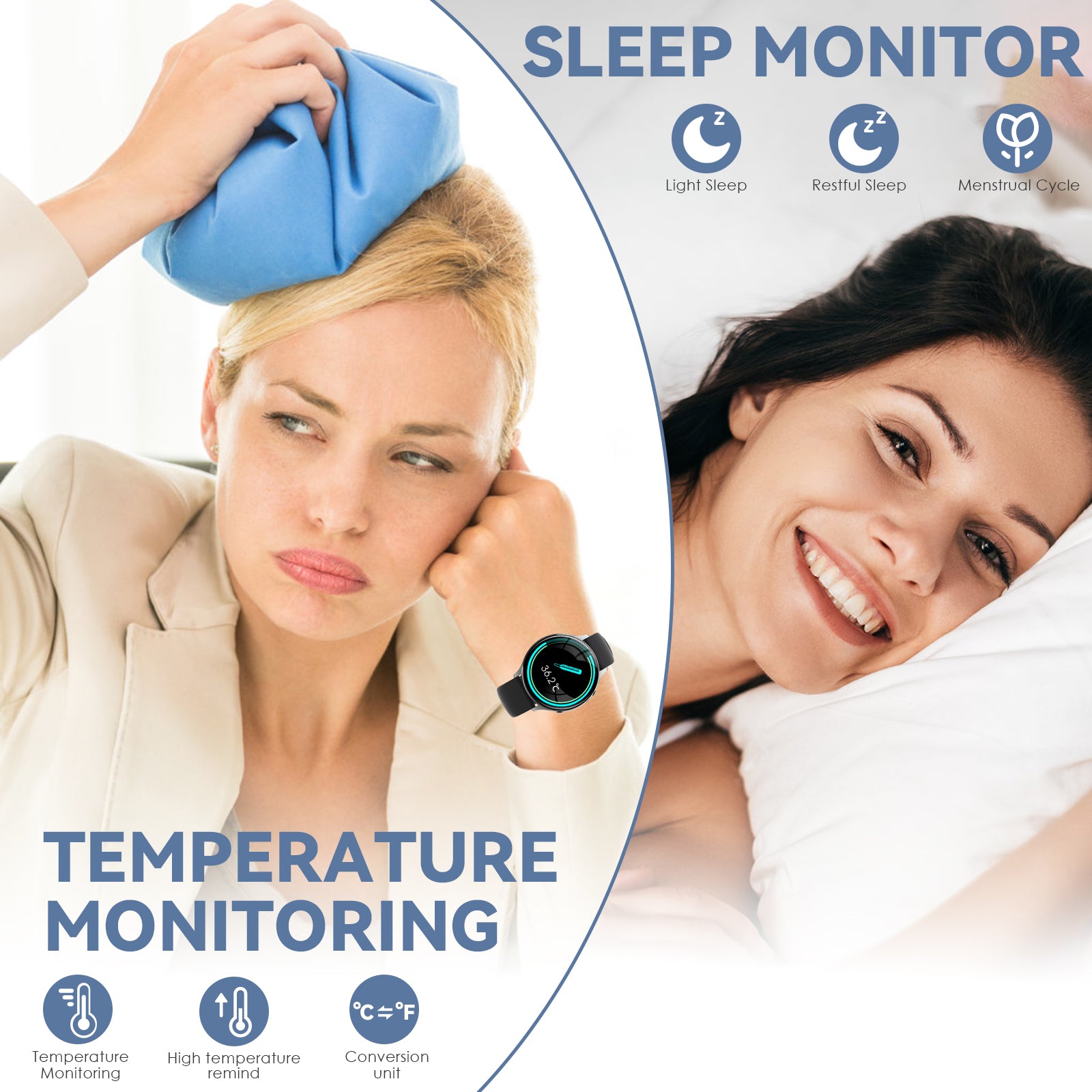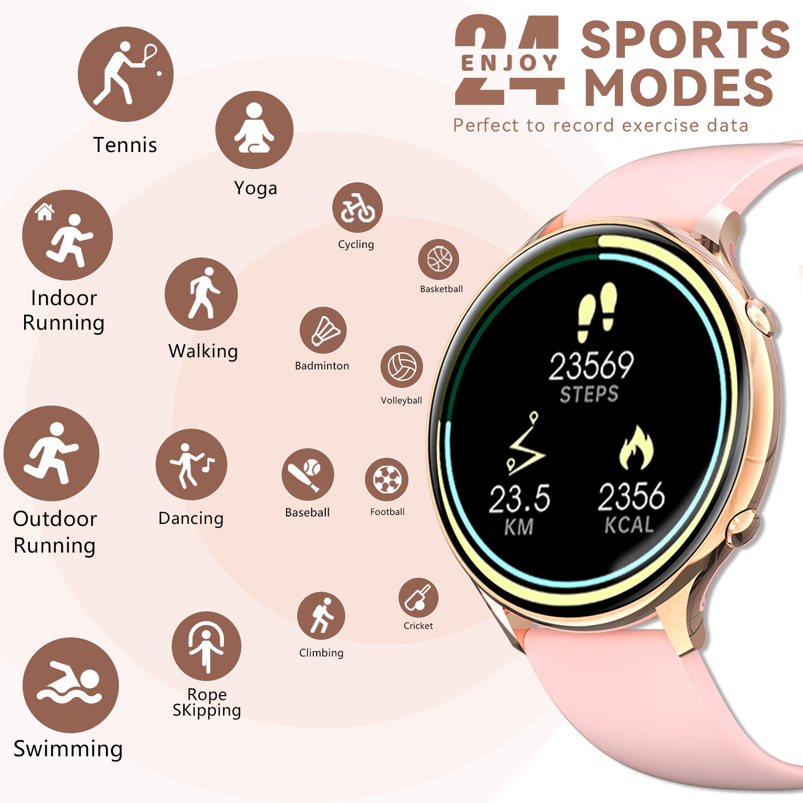 EIGIIS Smart Watch for Women, Fashionable Fitness Watch with Calorie Temperature Monitor Female Health Monitor Lady Sports Watch with 24 Sports Modes Activity Trackers Watch for iOS Android Phone