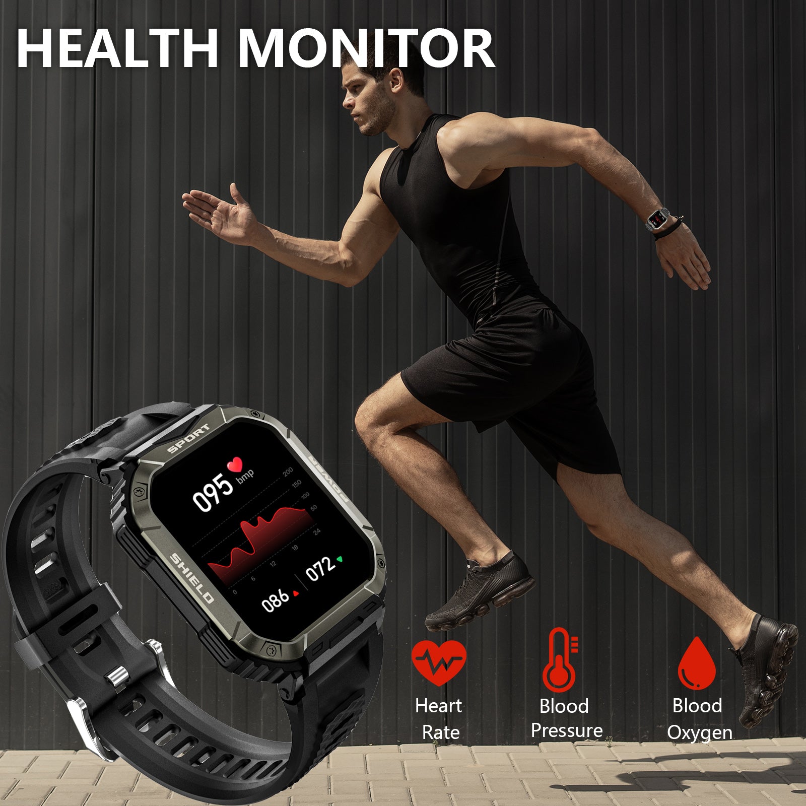 【Military Smart Watch with Make and Answer Calls Directly】- EIGIIS Smart watch built-in high-fidelity speakers ensure music playback quality and call clarity. You can directly make calls and answer calls even play music on your watch, also support view various notifications such as SMS and SNS (Facebook, WhatsApp, Instagram, Wechat and Twitter ) without turning on your phone. Anytime, anywhere communication brings you a convenient life.